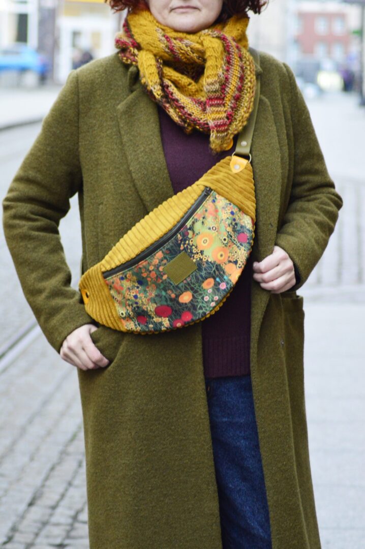 Nerka powstała z tkaniny tapicerskiej sztruksowej, poliestrowej oraz skóry naturalnej . Nerka jest bardzo duża, więc nadaje się do noszenia tylko w formie torebki.
