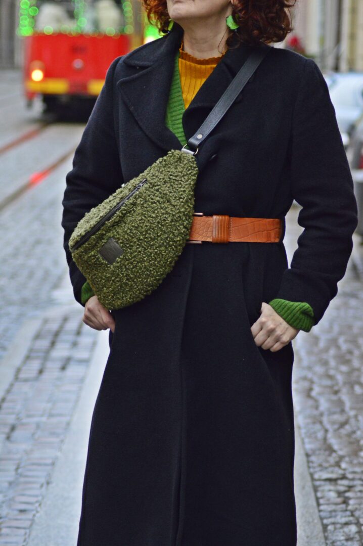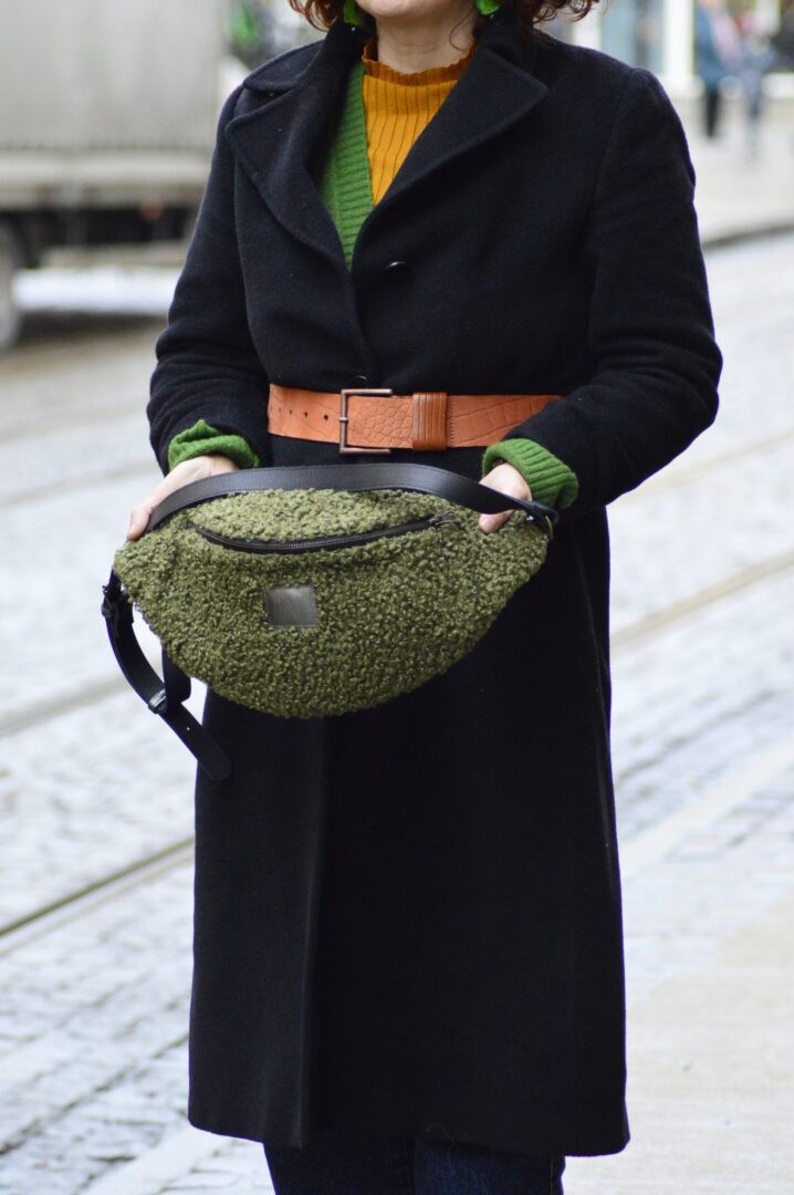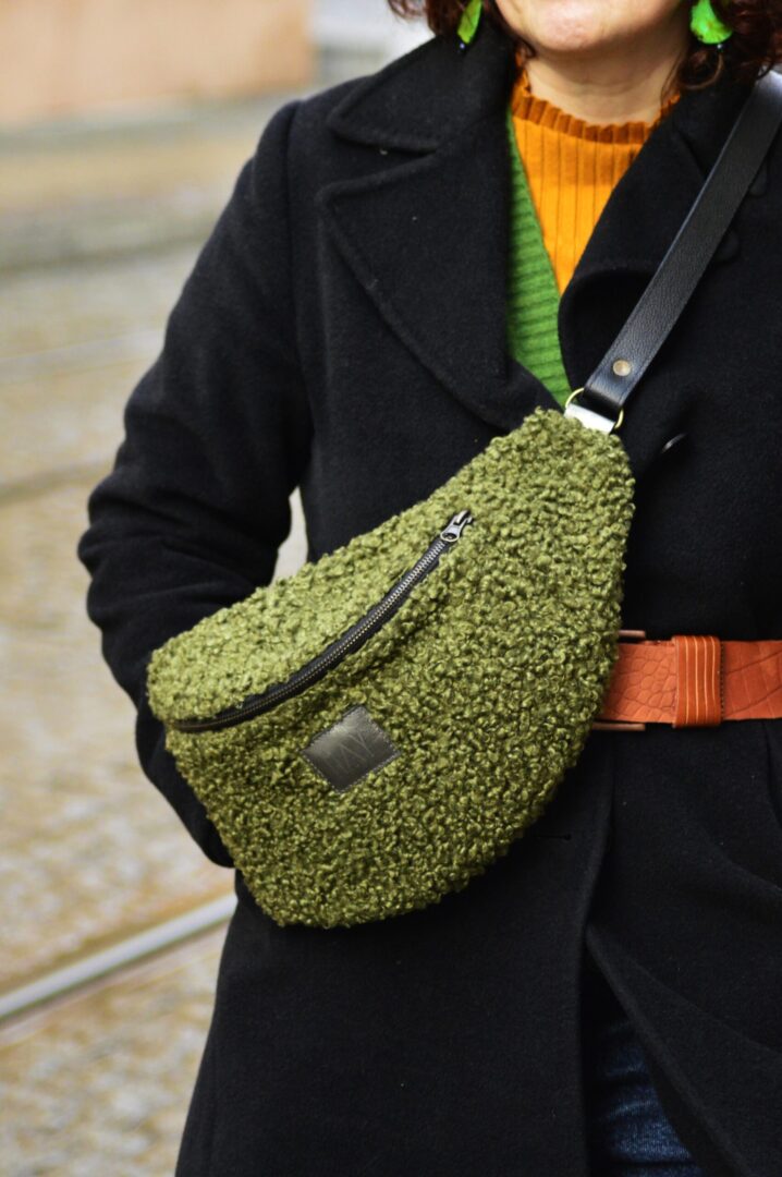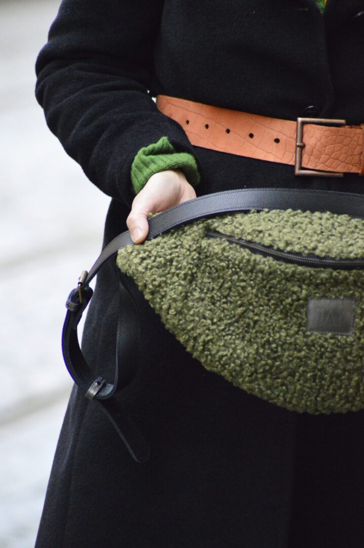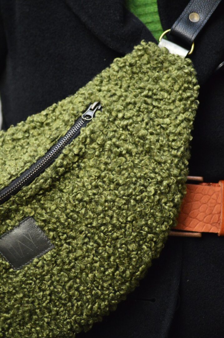 Nerka powstała z tkaniny tapicerskiej o fakturze baranka oraz skóry naturalnej . Nerka jest bardzo duża, więc nadaje się do noszenia tylko w formie torebki.