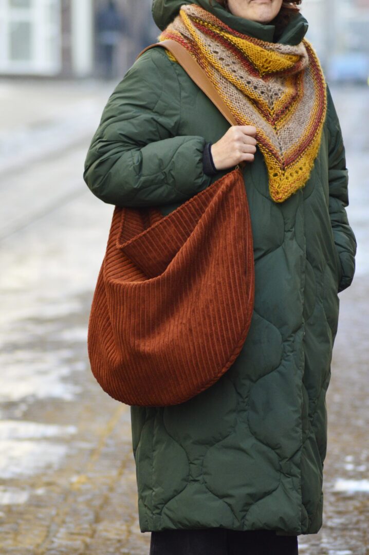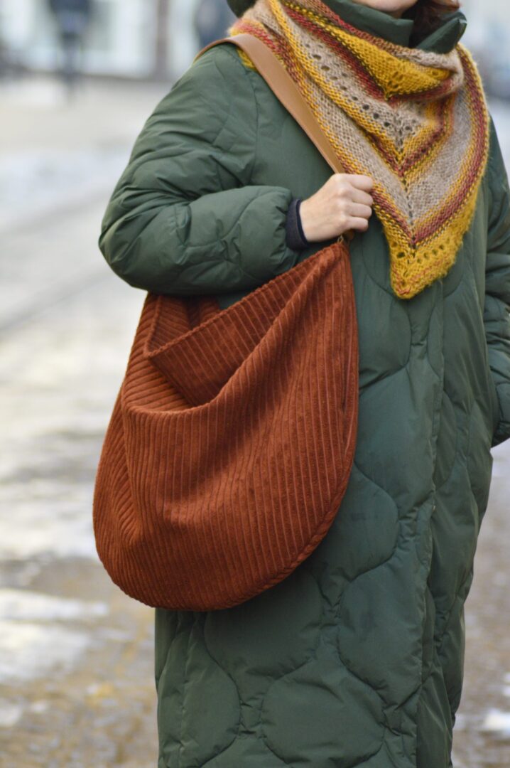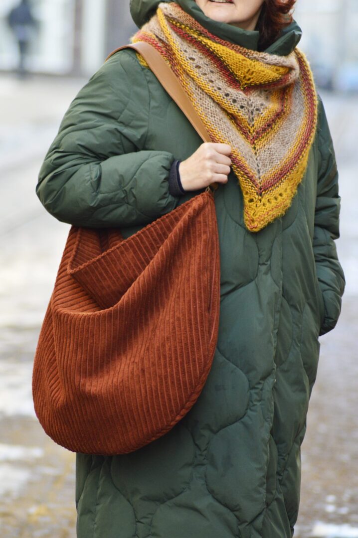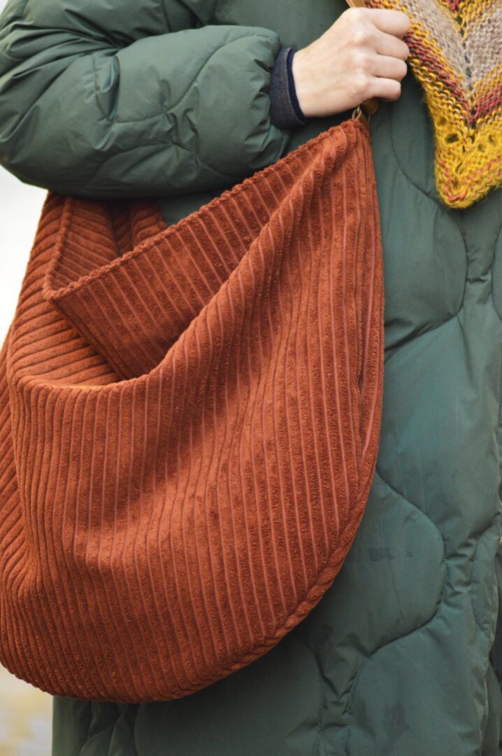 Duża, pojemna i wygodna torba została wykonana z tkaniny tapicerskiej o fakturze sztruksu oraz skóry naturalnej ( pasek z fakturą krokodyla ). Wewnątrz znajdują się trzy kieszonki, całość zapina się na zamek. Torba została dodatkowo wzmocniona warstwą wodoodporną.